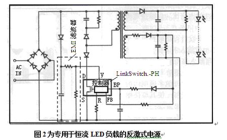 應(yīng)該說如今有多種類型控制器可以構(gòu)建恒流LED驅(qū)動電源-LED負(fù)載的反激式電源。在此僅以集成多項控制器LinkSwitch.-PH構(gòu)建的LED驅(qū)動器為例作分析。