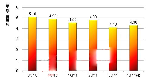 3Q’10至4Q’11全球PDP面板模塊出貨量變化