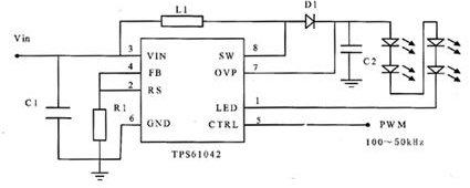 - 使用TI公司的TPS61042驅(qū)動(dòng)4個(gè)LED燈管