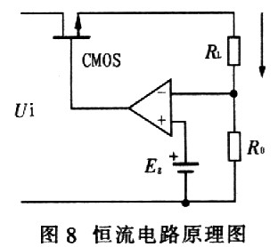 本系統(tǒng)將大電流CMOS管作為電子開關(guān),并采用恒流電路對(duì)LED陣列進(jìn)行恒流供電,使LED燈可以長(zhǎng)時(shí)間穩(wěn)定工作。下面介紹恒流實(shí)現(xiàn)方法。