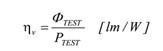 發(fā)光效率ηv的計(jì)算如下列公式(6)所述,為待測固態(tài)照明產(chǎn)品的總光通量ΦTEST除以總消耗功率PTEST,此指標(biāo)是用以評估固態(tài)照明電光效能轉(zhuǎn)換的重要指標(biāo)。