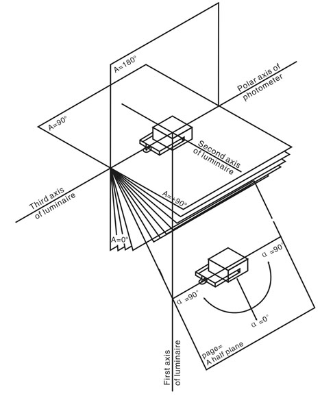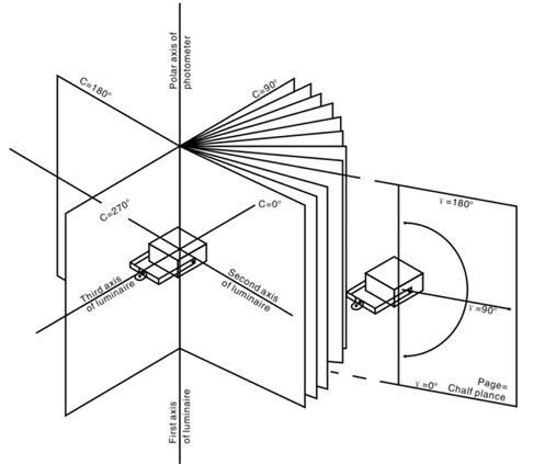 LM-79特別說明使用配光曲線儀量得的光強(qiáng)度分布數(shù)據(jù),須依照IES LM-63規(guī)范定義的格式,形成IES電子文件,以方便后續(xù)于照度分度上的模擬計(jì)算使用。