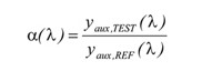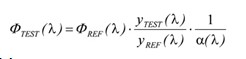 公式(2)中,yTEST (λ)為待測樣品在此系統(tǒng)下的光譜輻射計(jì)的讀值、yREF(λ)為參照標(biāo)準(zhǔn)燈在此系統(tǒng)下的光譜輻射計(jì)的讀值,α(λ)則為自吸收因子。
