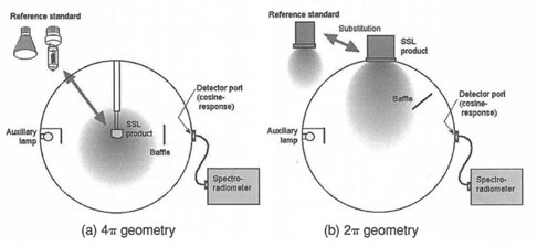 此份規(guī)范定義兩種光通量的量測系統(tǒng)方法,一是使用積分球系統(tǒng),另一種則為使用配光曲線儀系統(tǒng)。使用哪種系統(tǒng)須依據(jù)所要量測的量(顏色、光強(qiáng)度分布)及待測樣品尺寸等來決定。
