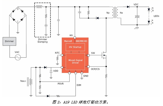消費(fèi)者用LED節(jié)能燈取代白熾燈等傳統(tǒng)照明解決方案的同時(shí),也希望得到同樣或更好的照明體驗(yàn)。不幸的是,他們常常發(fā)現(xiàn)LED燈在調(diào)光能力上有問題,因此覺得LED燈幾乎不能調(diào)光或調(diào)光時(shí)會(huì)閃爍。很多LED燈與家中已安裝的壁式調(diào)光器也不兼容。Marvell最新的88EM8183深度調(diào)光單級(jí)交流/直流LED驅(qū)動(dòng)器IC為OEM廠商和ODM廠商提供了兼容性最廣泛的調(diào)光解決方案,該IC與全球市場(chǎng)上絕大多數(shù)調(diào)光器都兼容,而且提供卓越的光輸出質(zhì)量,可提高消費(fèi)者的滿意度,減少退貨。