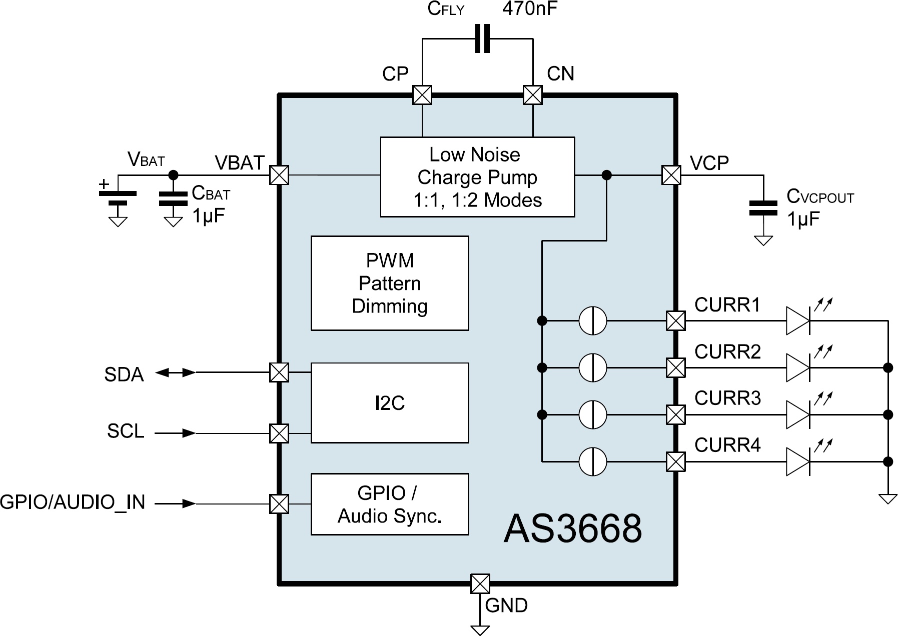 AS3668引人注目的燈光效果作為額外的用戶界面,可改善移動(dòng)設(shè)備的外觀并帶來(lái)更高附加值。其12-bit PWM調(diào)光功能可實(shí)現(xiàn)諸如在高低不同亮度中無(wú)縫過(guò)渡的平滑呼吸燈效果。芯片同時(shí)擁有音頻同步模式,可根據(jù)音頻內(nèi)容使LED改變亮度和顏色。
