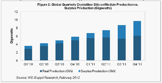 - 2011年光伏供應(yīng)商的過剩產(chǎn)能達(dá)到9.96GW