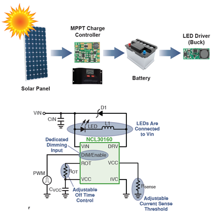 NCL30051與NCP30160IC在一起搭配工作,可以最少的外部元件簡化電源電路設(shè)計(jì)。這種架構(gòu)使芯片組能夠集成在更緊湊及更高性價(jià)比的LED照明電源中,用于戶外照明(如LED路牌、街燈、停車場燈)等通用照明應(yīng)用。