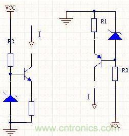 但是這會(huì)增加成本,因?yàn)楹懔鞫O管比較貴。另一個(gè)簡單的方法,就是用一個(gè)晶體三極管來加大電流。圖15表明了采用NPN和PNP三極管進(jìn)行電流放大的電原理圖。