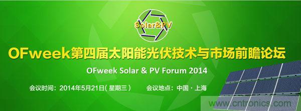 2014年5月21日,由OFweek主辦、OFweek太陽(yáng)能光伏網(wǎng)承辦的“OFweek Solar & PV Forum 2014太陽(yáng)能光伏技術(shù)與市場(chǎng)前瞻論壇”將在上海隆重舉行。本次峰會(huì)擬邀請(qǐng)杜邦、MANZ、特變、山億新能源等知名企業(yè)專家、高層,以及政策決策機(jī)構(gòu)、行業(yè)組織機(jī)構(gòu)嘉賓主講太陽(yáng)能電池轉(zhuǎn)換效率的技術(shù)、CIGS薄膜電池技術(shù)與投資、光伏電站項(xiàng)目投資收益率(IRR)等重大議題。同時(shí)OFweek行業(yè)研究中心太陽(yáng)能光伏領(lǐng)域分析師團(tuán)隊(duì)針對(duì)2014年中國(guó)光伏電站領(lǐng)域的建設(shè)熱點(diǎn)和投資機(jī)會(huì)共同組織本次論壇,給業(yè)界及希望在光伏領(lǐng)域?qū)ふ倚聶C(jī)會(huì)的投資方以明確的分析和投資指南。