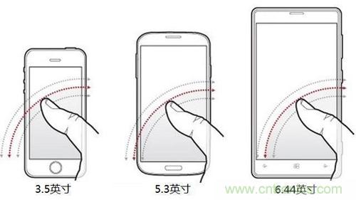 手機屏幕越來越大,多大的屏幕才好用呢?其實這個因人而異。調(diào)查顯示,男性手掌平均長度為18.9cm,大拇指長度7cm左右,4.5英寸是最佳尺寸。而女性為17.2cm和6cm,最佳尺寸為4.0英寸。