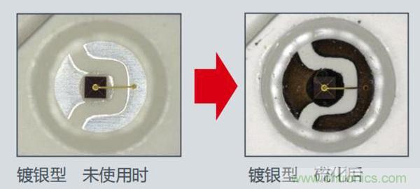 通過對比得出ROHM新產(chǎn)品的優(yōu)勢:一是能保持亮度,二保護(hù)芯片鍵合材料不受損壞,三無需其他保護(hù)對策。