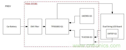 圖示1-大聯(lián)大世平推出基于TI產(chǎn)品的車輛日間行車燈LED驅(qū)動(dòng)器參考設(shè)計(jì)系統(tǒng)架構(gòu)圖
