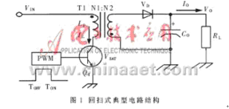 回掃式拓撲電路結構無疑是目前比較理想的多路供電電源電路結構。其峰值電感電流可檢測、輸出電壓擴展性強等特點,極大地提高了控制電路的穩(wěn)定性和抗干擾能力,便于供電電源的設計。