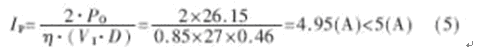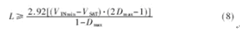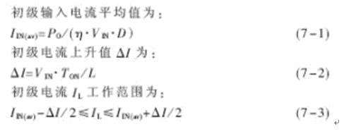 設PWM控制最大占空比Dmax=42%,如果初級繞組的電感量設計得大,則流過功率開關管和輸出濾波電容的電流峰值小,但由于電流上升斜率小,電路抗干擾能力差且功率開關管開通電流大;電感量小時,電流脈動大,沖擊電流大。因此設計電感電流工作在連續(xù)工作狀態(tài),輕負載時取額定功率的一半,由(2)式可知:
