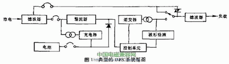 UPS不問斷電源是個特殊的設(shè)備,它既是電網(wǎng)的負(fù)載,又要給負(fù)載提供電源。所以它的EMC設(shè)計(jì)既要保證它不對電網(wǎng)造成電磁污染,又要保證它提供給負(fù)載的是個干凈的電源。UPS本身振蕩電路就是一個干擾源。典型的UPS系統(tǒng)框圖如圖l所示。它的基本結(jié)構(gòu)是一套將交流市電變?yōu)橹绷麟姷恼髌?、充電器和把直流電再變?yōu)榻涣麟姷哪孀兤?,電池在交流正常供電對儲存能量且維持在一個正常的充電電壓上.一旦市電中斷,蓄電池立即對逆變器供電 保證UPS交流輸出。