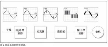 半導(dǎo)體元件的高頻開關(guān)會(huì)產(chǎn)生諧波、整流中斷和瞬態(tài)電壓峰值。它們給電力網(wǎng)絡(luò)帶來負(fù)面影響。除了相關(guān)EMC標(biāo)準(zhǔn)以外,電力主管部門還會(huì)施行進(jìn)一步的指令,把對(duì)電源網(wǎng)絡(luò)的干擾減弱到可容忍的程度。扼流器和線路濾波器可用于減弱干擾。除了線路端EMC保護(hù)以外,對(duì)變頻器輸出端也通常采用保護(hù)措施。目標(biāo)提高效率、延長(zhǎng)工作壽命、實(shí)現(xiàn)高效布線。