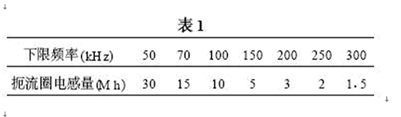 L1用于濾除低頻共態(tài)噪聲,它的磁芯一般采用高頻鐵氧體磁性材料。由于鐵氧體磁性材料沒有渦流的影響,高頻率仍能保持較高的導(dǎo)磁率,缺點(diǎn)是弱磁場(chǎng)容易飽和,但是L1在繞制時(shí)采用雙線并繞的方式,即在一個(gè)閉合磁路的磁芯上繞制相同電感量的兩個(gè)繞阻,電源電流經(jīng)兩個(gè)繞阻產(chǎn)生相反磁通,相互抵消,防止磁芯飽和。對(duì)于共態(tài)噪聲?;ジ邢禂?shù)產(chǎn)生磁通相互增強(qiáng),即電感量增強(qiáng),能很好的抑制共態(tài)噪聲。L1的共態(tài)扼流圈的電感量一般由所要抑制的噪聲電平的下限頻率(DC/DC轉(zhuǎn)換模塊的基波頻率)確定,下限頻率越高,所需要的電感量越小,粗略對(duì)應(yīng)值見表1。