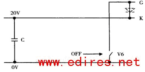 硬驅(qū)動(dòng)關(guān)斷如圖4所示電路,當(dāng)將V6 開(kāi)通時(shí),電容C 對(duì)門(mén)極反向放電,將IGCT關(guān)斷。由于電路的極低電感(5 到15nH 取決于IGCT 的型號(hào))和大電容器組,IGCT對(duì)門(mén)2陰極端的電磁噪音不敏感。與IGCT相比較,傳統(tǒng)的GTO驅(qū)動(dòng)裝置大約有200 nH的電感和更小的電容器組。