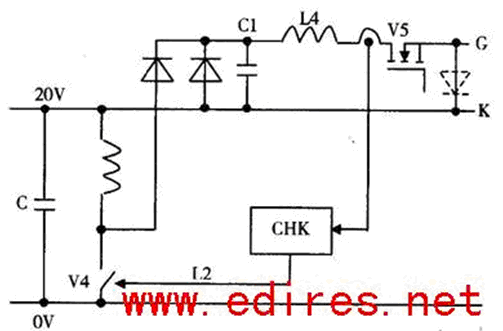 IGCT開(kāi)通之后陽(yáng)極電流不會(huì)馬上流通。在電流源逆變器中二極管的關(guān)斷有時(shí)會(huì)延遲電流換向進(jìn)入工作中的IGCT。開(kāi)通脈沖的第二部分設(shè)計(jì)符合換向的要求。開(kāi)通脈沖產(chǎn)生之前先斷開(kāi)圖4中的開(kāi)關(guān)V6。