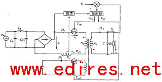 由上面的分析和測(cè)量可見,采用兩輸入的DC/DC變換器的好處。它既抑制輸入電流的高頻分量,降低輸出電壓e0的紋波,又提高了功率因數(shù)。因此,使整個(gè)變換器的性能得到令人滿意的改善。如果采用多于兩個(gè)輸入(如三輸入以上),可推想在抑制高頻分量和降低e0紋波方面會(huì)有更好的效果。但是,其控制部分的參數(shù)必須經(jīng)過優(yōu)化。