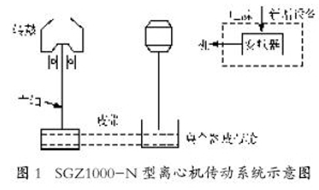 我廠海綿銅處理工序中采用SGZ1000-N 型三足式全自動(dòng)下部卸料離心機(jī),進(jìn)行海綿銅固液分離,該設(shè)備由主機(jī)、輔機(jī)、轉(zhuǎn)鼓(以1 200 r/min轉(zhuǎn)動(dòng))等組成。傳動(dòng)系統(tǒng)情況如圖1所示。