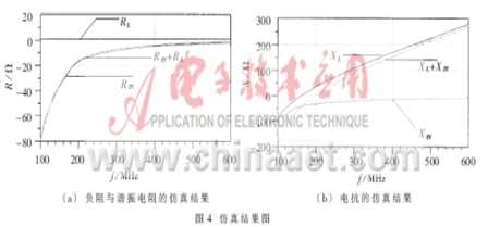 從圖4(a)的仿真結(jié)果可以看出,在200MHz附近,RIN+RL<0,所以滿足起振條件,由于RIN的負(fù)阻比較大,所以提供交流能量的能力比較強(qiáng),故振蕩的幅度會比較大,這一點(diǎn)在后面的仿真和測試中可以得到證實。從圖4(b)可以看出,當(dāng)f為200MHz左右時,XIN+XL=0,從而滿足相位平衡條件,它決定了振蕩的頻率。