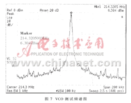 從圖7的測量結(jié)果可以看出,頻率范圍、輸出功率和相位噪聲等指標(biāo)與軟件仿真結(jié)果一致。