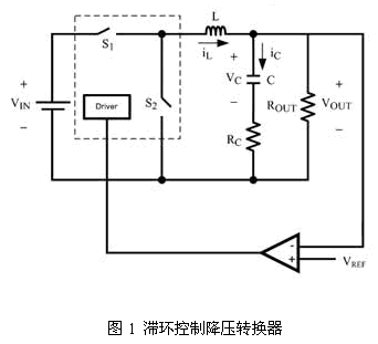 根據(jù)可變結(jié)構(gòu)控制理論來分析滯環(huán)控制降壓轉(zhuǎn)換器,得出輸出電壓紋波的增加和相移是由于輸出電容器的過小ESR所致。這也解釋了為何ESR較小的陶瓷電容器通常都不會(huì)使用在滯環(huán)控制降壓轉(zhuǎn)換器上。