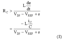 其中,iC是輸出電容器的電流,它在0A的穩(wěn)態(tài)點(diǎn)周圍產(chǎn)生紋波。將2ICMAX定為紋波電流iC的峰到峰的最高值。那當(dāng)s>0時(shí),要獲得ds/dt<0的足夠條件為: