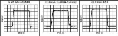 圖3 Butterworth (a)、Chebyshev (b)和Bessel (c) 低通5階濾波器的時間響應|