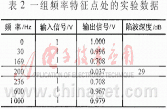 表2給出一組頻率特征點處的實驗測試數(shù)據(jù)。