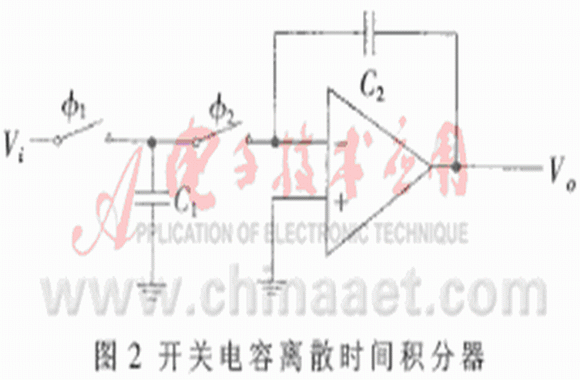 這里直接給出開關(guān)電容離散時間積分器的結(jié)構(gòu)圖(圖2) 及其離散時間傳遞函數(shù)[4]: