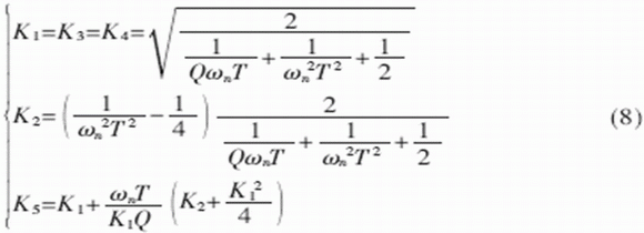 令濾波器的中心角頻率為ωn,品質(zhì)因數(shù)為Q,于是有: