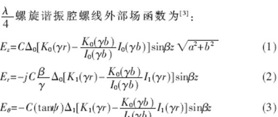 螺旋諧振腔原型如圖1。改變腔長或在腔內(nèi)引入某種形式的可變電抗,可對諧振腔進行調(diào)諧。鑒于電控器件一般存在耐壓問題,了解腔中場分布,找出耐壓與調(diào)諧的最佳平衡點十分必要。