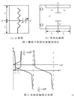 鑒于此,“螺線中部降壓加載調(diào)諧”將有效緩解上述問題。事實上,端部加載正是中部加載的特例。具體方法示意及等效電路見圖3(a)、(b)。