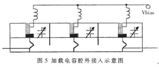 傳統(tǒng)的小信號電調(diào)螺旋諧振腔、濾波器中,加載電容采用腔內(nèi)安裝接入方式。這種方式易實現(xiàn),但在高頻情況下,腔內(nèi)強行添加異物,使本來就復雜的螺旋腔場分布變得更為復雜,導致工作特性難以把握。同時,新物體帶來的分布電容將引起中心頻率的偏移,嚴重時造成中心頻率超越所需頻段。