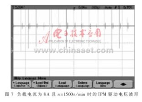 圖7為負(fù)載電流為8A、SRM額定轉(zhuǎn)速運行時IPM的15V驅(qū)動電壓波形。