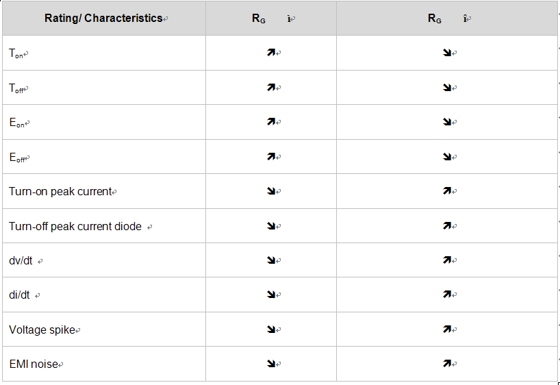 - 測試和衡量最終系統(tǒng)是確定柵極電阻最終最優(yōu)值的唯一途徑,最優(yōu)的柵極電阻值一般介于IGBT數(shù)據(jù)表中所列的值和其兩倍之間