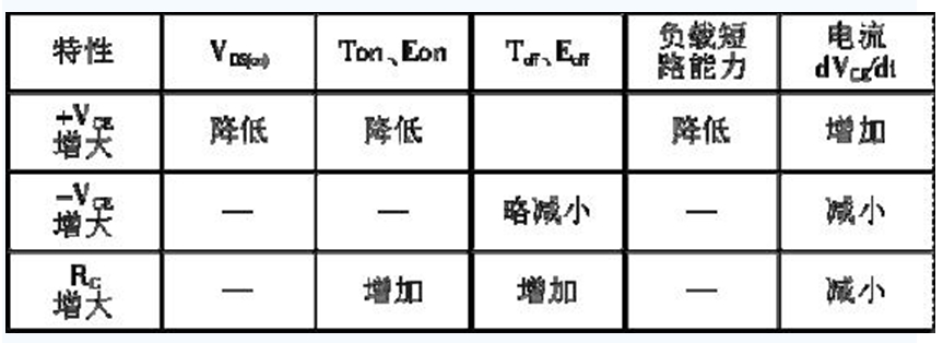 門極電阻增加,使IGBT 的開通與關(guān)斷能耗均增加,門極電阻減小又使di/dt 增大,可能引發(fā)IGBT 誤導(dǎo)通,同時(shí)RG 上的能耗也有所增加。所以通常RG 一般取十幾歐到幾百歐之間。