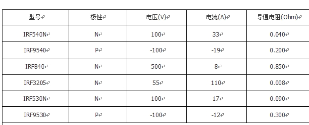 附錄:幾種IRF場(chǎng)效應(yīng)管的參數(shù)