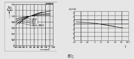 鋁電解電容器在容量偏差由于其固有的材料、結(jié)構(gòu)特性的影響,在額定電容量及容量溫度穩(wěn)定性方面偏差較金屬化電容器有較大的差距:鋁電解電容器由于無法控制鋁極板氧化面積致使容量無法準(zhǔn)確控制,而金屬化電容器產(chǎn)品可以通過直接控制極板面積精確控制產(chǎn)品電容量,偏差可以控制在-2%~+2%之間,對線路的精確性提供了可靠的保證。由于金屬化膜電容器中絕緣介質(zhì)材料為高分子聚合物(聚丙烯、聚酯等)薄膜,可以通過控制薄膜厚度(精度在0.2微米以上)來提高電容器產(chǎn)品的額定電壓,而鋁電解電容器由于絕緣介質(zhì)是鋁箔表面的氧化鋁層,難以控制氧化層厚度及均勻性,所以難以達到高的耐壓及過壓倍數(shù)。鋁電解電容器額定電壓較低(通常≤450V DC),而金屬化電容器產(chǎn)品應(yīng)用于GVF系列高壓變頻器上的直流濾波電容器單臺額定電壓已經(jīng)達到20000V DC 。該公司原來使用52段鋁電解電容器串連使用,非常煩雜,采用金屬化膜電容器大大節(jié)省了在鋁電解電容器串連過程中煩雜的均壓工作,節(jié)約了材料及人工成本,提高了效率。這種新型金屬化電容器額定紋波電流可以達到同等容量鋁電解電容器額定紋波電流的幾倍到幾十倍,而且鋁電解電容器過流能力只有1.1IN ,金屬化電容器過流能力可以達到1.3 IN,從而避免了在中大功率系統(tǒng)中,為達到系統(tǒng)額定電流而增大鋁電解電容器并聯(lián)數(shù),犧牲容量而造成的不必要的浪費,尤其是針對急劇的電壓變化(高DV/DT)需要電容器提供瞬時大電流加以電壓支撐或吸收時,鋁電解電容器幾乎可以說沒有作用,當(dāng)負載電機工作在四象限工況下時,逆變橋工作在整流狀態(tài)下需要電容器提供損失電能吸收時,金屬化膜電容器較鋁電解電容器優(yōu)勢非常明顯。同時電容器容抗是隨著頻率的變化呈反比例關(guān)系出現(xiàn)的,而電容器的有功損耗是隨著電流的增大而增大,且為電流平方成正比關(guān)系,所以電容器的損耗則成為在電容器運行過程中安全可靠的至關(guān)重要的因素。電容量溫度穩(wěn)定性參照圖1所示,金屬化電容器容量溫度變化率僅為鋁電解電容器的10%左右,且金屬化電容器的損耗僅為鋁電解電容器的1%左右,發(fā)熱量小溫升低,從而進一步保證了系統(tǒng)的穩(wěn)定性。