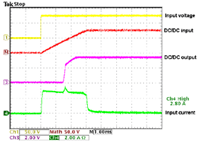 圖4. 通信系統(tǒng)在標稱輸入電壓和最大輸出負載時的沖擊電流限值(DC/DC電源)