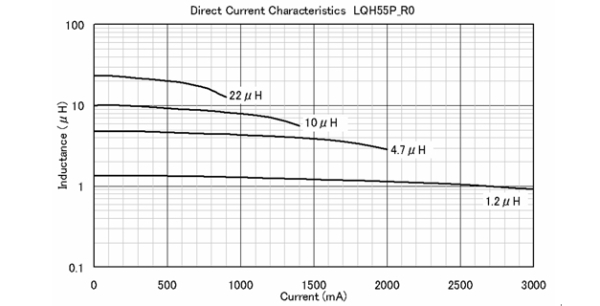 表3及圖6中表示了LQH55P_R0系列的額定電流表和直流偏置特性。