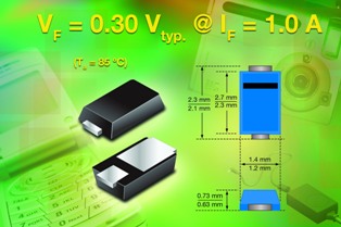 日前,Vishay Intertechnology宣布,推出兩款新型肖特基整流器 --- MSS1P2U和MSS1P3U,在+85℃和+25℃時(shí)的前向壓降分別只有0.35V和0.4V。器件采用小型MicroSMP功率封裝,額定電壓分別為20V(MSS1P2U)和30V(MSS1P3U),輸出電流為1A,Vishay此次推出的新型器件的高電流功率密度和低熱阻有助于實(shí)現(xiàn)節(jié)省空間的設(shè)計(jì)。