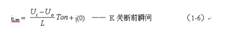 當(dāng)控制開關(guān)K由接通期間Ton突然轉(zhuǎn)換到關(guān)斷期間Toff的瞬間,流過電感L的電流iL達(dá)到最大值:
