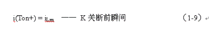 式中i(Ton+)為控制開關(guān)K從Ton轉(zhuǎn)換到Toff的瞬間之前流過電感的電流,i(Ton+)也可以寫為i(Toff-),即:控制開關(guān)K關(guān)斷或接通瞬間,之前和之后流過電感L的電流相等。實(shí)際上(1-8)式中的i(Ton+)就是(1-6)式中的iLm,即: