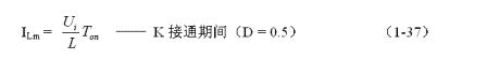 這里特別指出:(1-50)和(1-51)式的結(jié)果,雖然是以開(kāi)關(guān)電源工作于臨界連續(xù)電流狀態(tài)的條件求得,但對(duì)于開(kāi)關(guān)電源工作于連續(xù)電流狀態(tài)或斷流狀態(tài)同樣成立,因?yàn)椋敵鲭妷篣o只取其峰值電壓Up,而不是取其平均值。