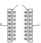 圖一為超級電容器的模型,超級電容器中,多孔化電極采用活性炭粉和活性炭和活性炭纖維,電解液采用有機(jī)電解質(zhì),如丙烯碳酸脂(propylene carbonate)或高氯酸四乙氨(tetraetry lanmmonium perchlorate)。工作時(shí),在可極化電極和電解質(zhì)溶液之間界面上形成的雙電層中聚集的電容量c由下式確定: