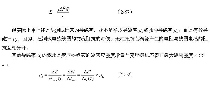 很多人在測(cè)試變壓器鐵芯導(dǎo)磁率的時(shí)候,都是通過(guò)測(cè)試變壓器線圈電感量的方法來(lái)測(cè)試變壓器鐵芯的導(dǎo)磁率;這種測(cè)試方法實(shí)際上就是測(cè)試電感線圈的交流阻抗,然后把阻抗換算成線圈的電感量,最后再根據(jù)(2-67)式求出變壓器鐵芯的導(dǎo)磁率。